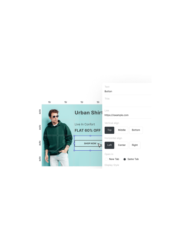 Vis kampanjene dine med kombinasjon av banner, tekst og knapp. Et godt plassert banner kan styre kundene direkte til kjøp – akkurat når de er mest interessert.