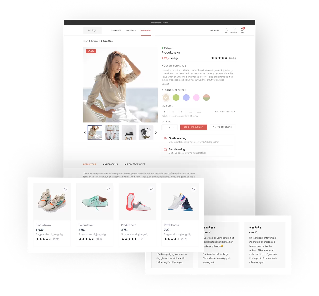 Ofte bruker vi ferdige designmaler som gjør at vi kan starte utviklingen av en nettbutikk på mandag og være ferdig på fredag.