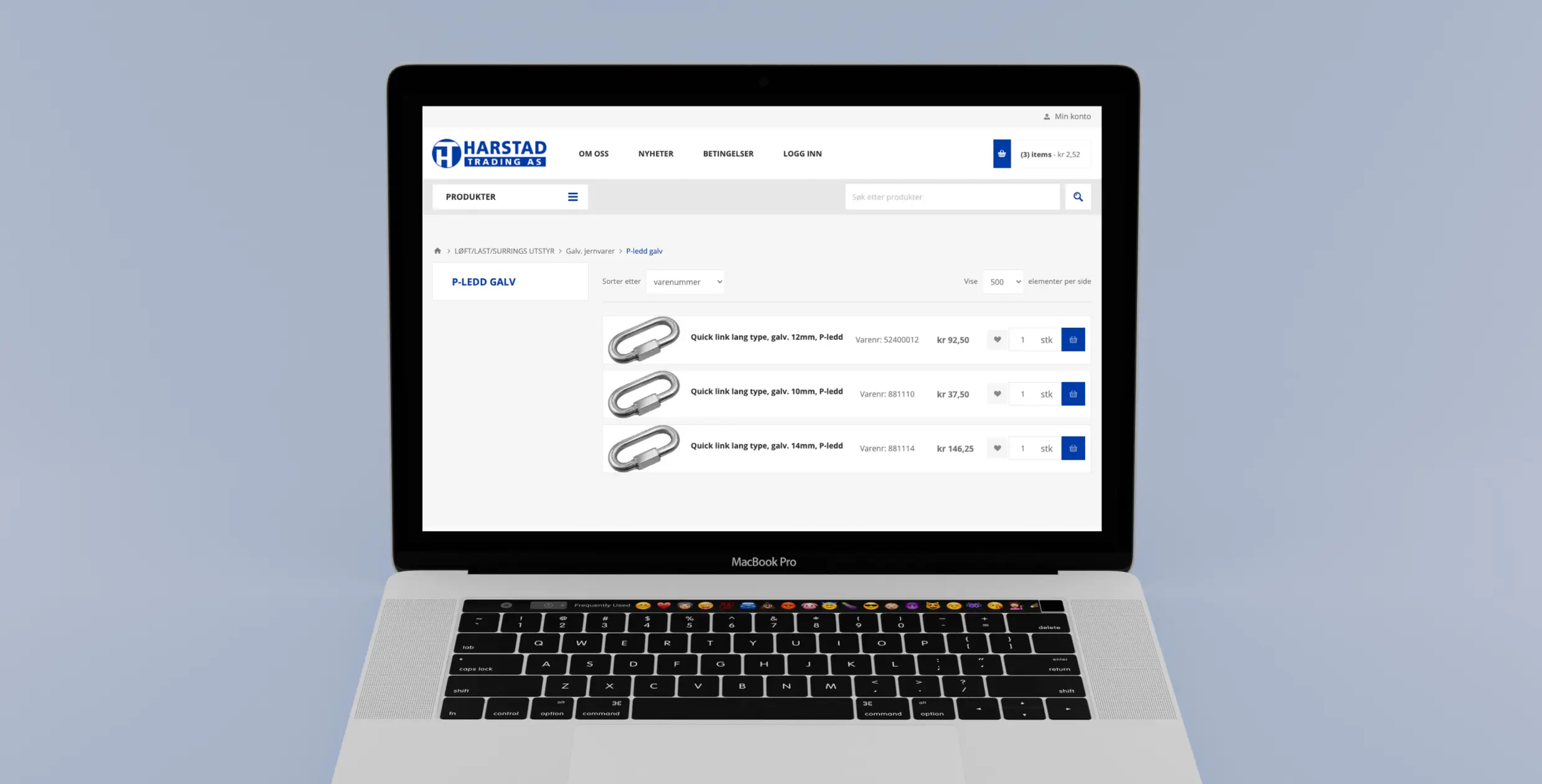 Harstad Tradings B2B- nettbutikk bruker mye standard funksjonalitet i løsningen som sikrer en stabil og effektiv drift. Et ferdig rammeverk som i utgangspunktet er en komplett B2B- nettbutikkløsning med svært mye standard funksjonalitet.