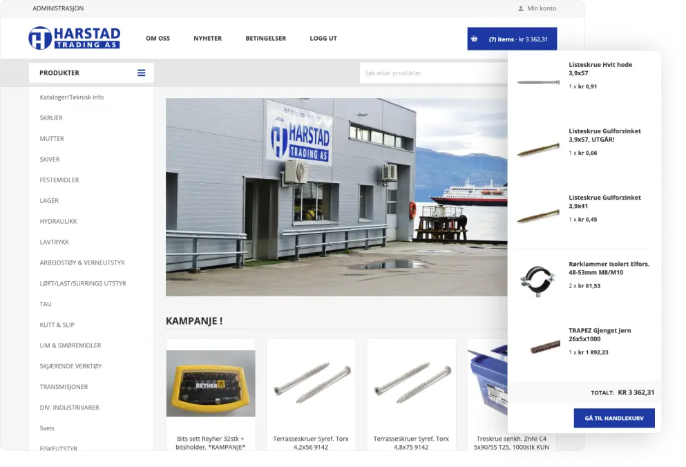 Harstad Trading ønsket å selge byggevarer i hele Norge. Nettbutikken måtte kombinere gode kundeopplevelser med effektiv salgs- og administrasjons-håndtering.