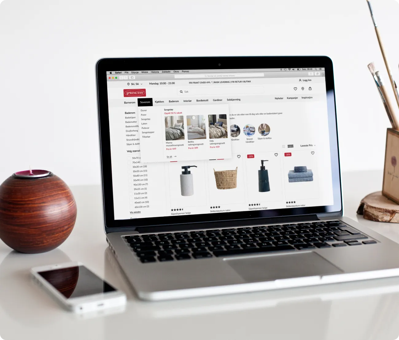 Siden 2012 har Digitroll utviklet og videreutviklet Princess sin nettbutikk. Det lange samarbeidet har gjort oss tett på både forretningsbehovene og kundereisen – fra inspirasjon til kjøp. Løsningen er kontinuerlig optimalisert for omnikanal, ytelse og skalering.